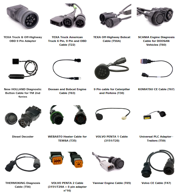 FleetCrew offer a wide variety of cables and connectors for various engine makes and models. Check out the diagnostic cables and connectors section of our online store to find what you are looking for. Over 50 different cables available.